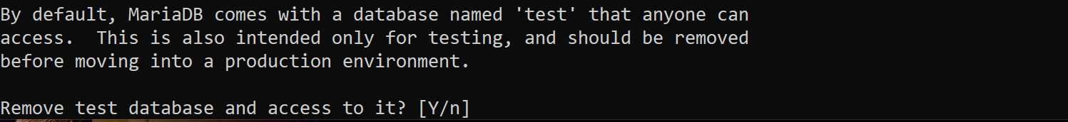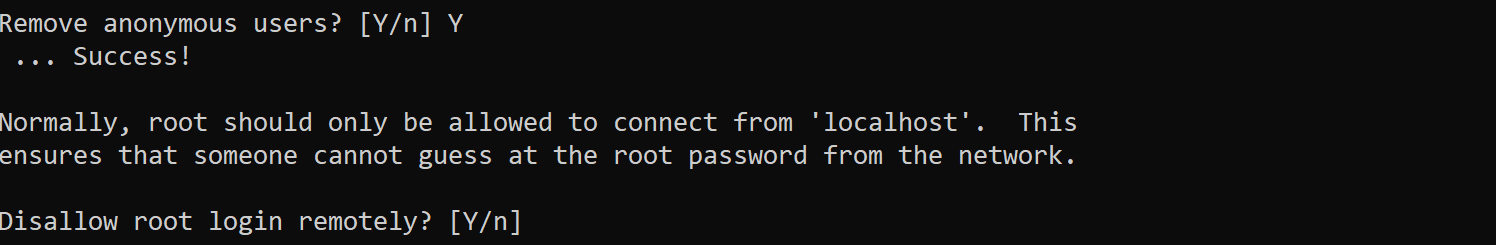 위 질문에서는 익명사용자 삭제하겠냐고 물어봅니다. Y를 누르고 엔터를 쳐주세요.