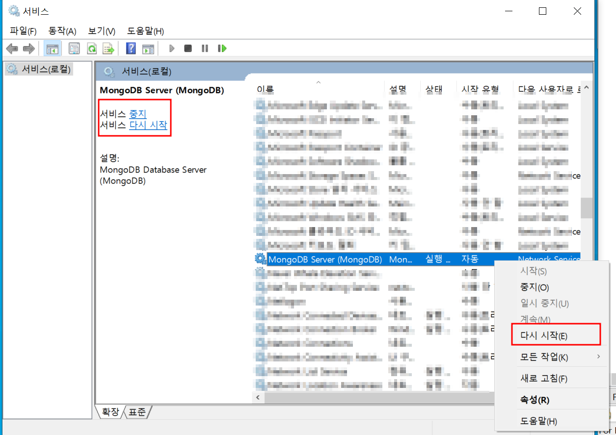 아래와 같이 설정을 잡아주시고 몽고DB서버를 재시작 해주세요.