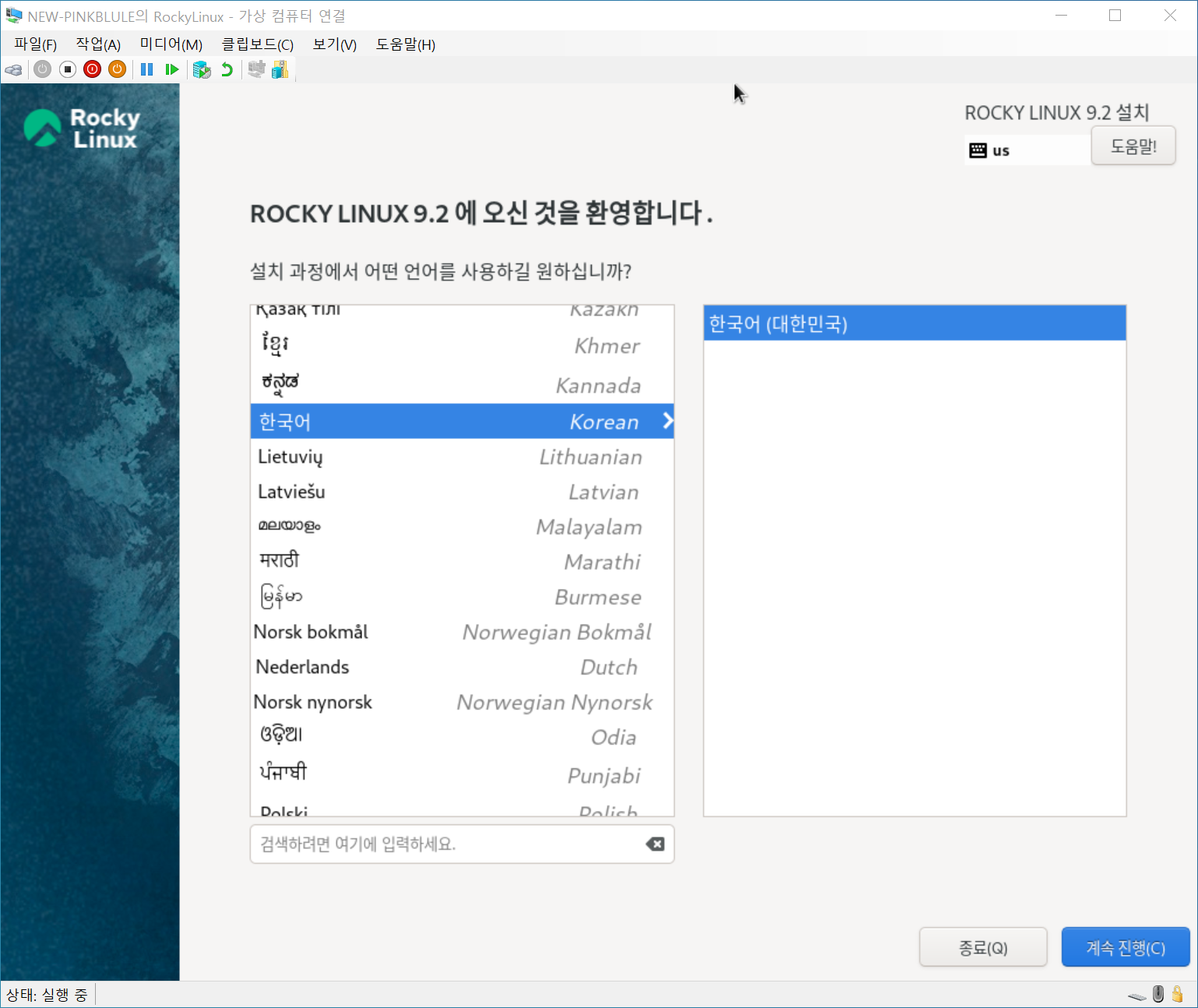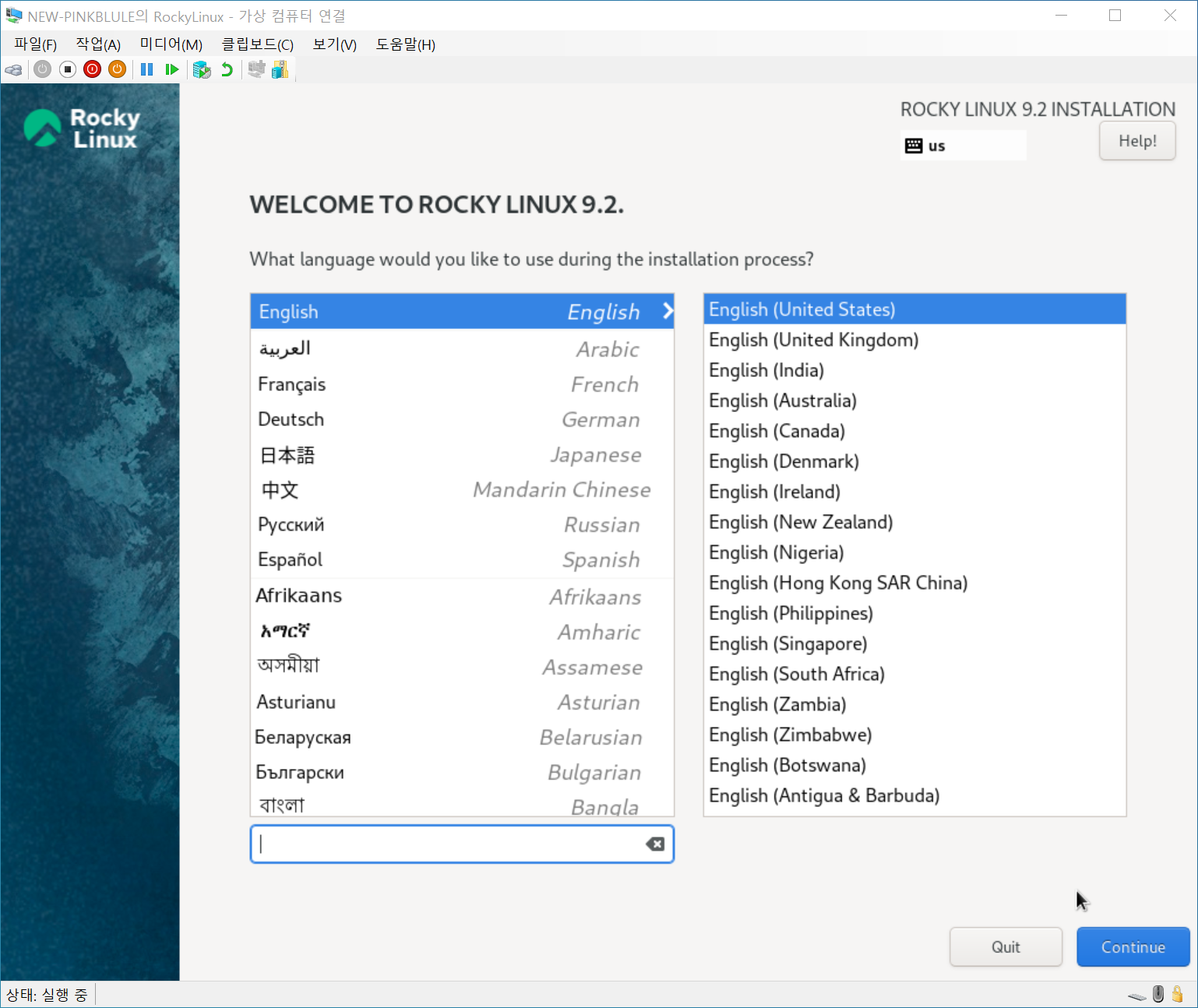 많이 익숙하던 화면이 나오네요. CentOS 설치할 때 로케일 지정하는 부분입니다.