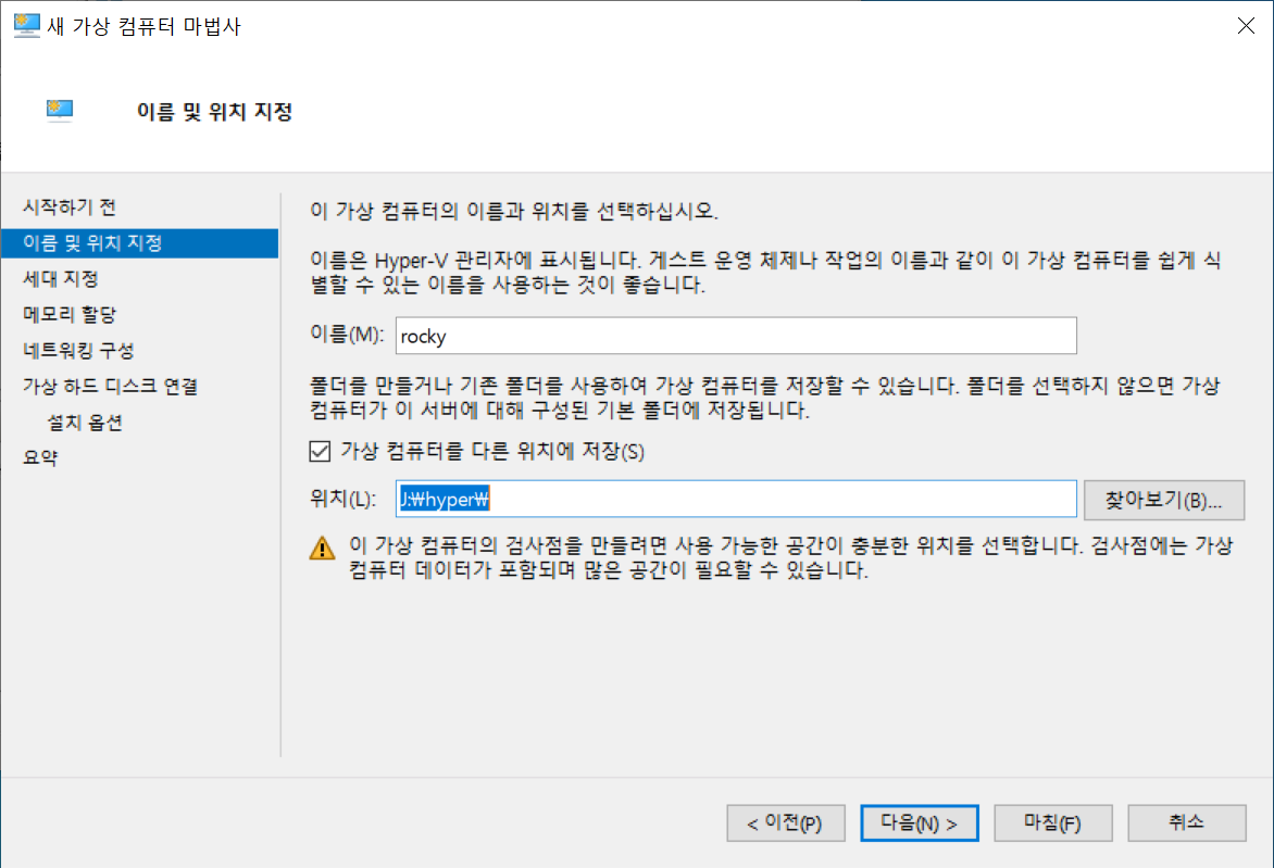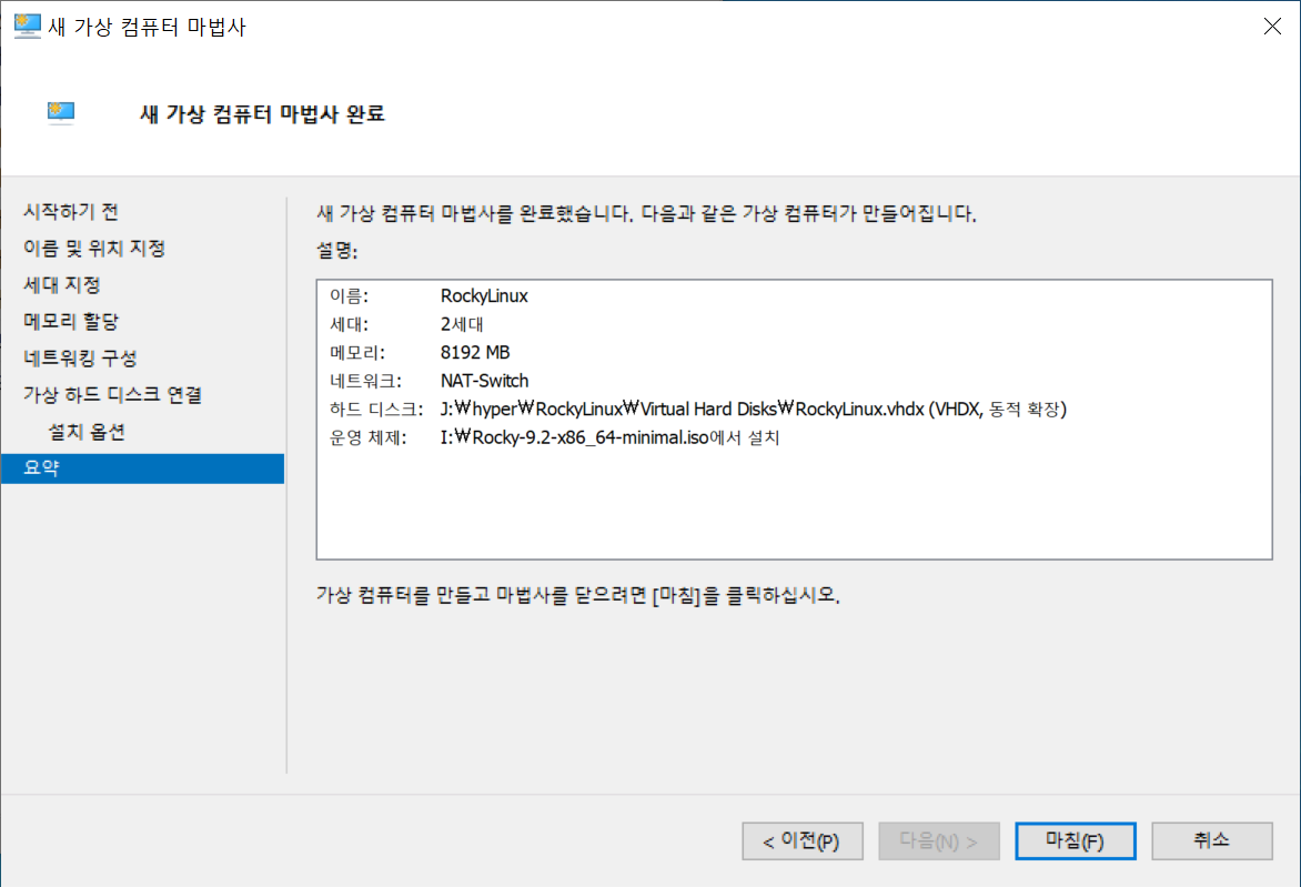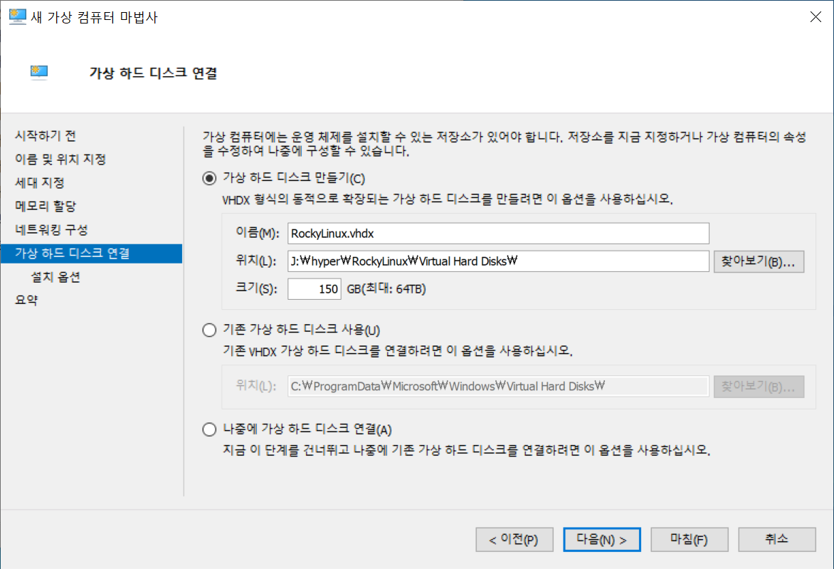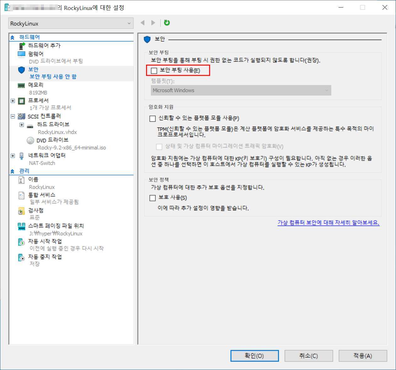 2. Hyper-V 를 이용하여 록키리눅스 설치하기.