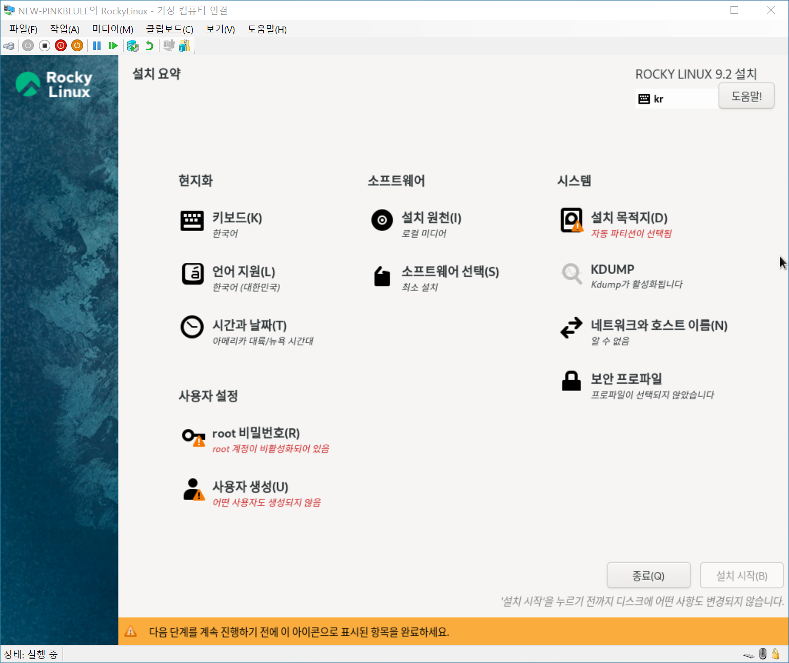이렇게 록키리눅스 설치 과정을 진행해보았습니다.