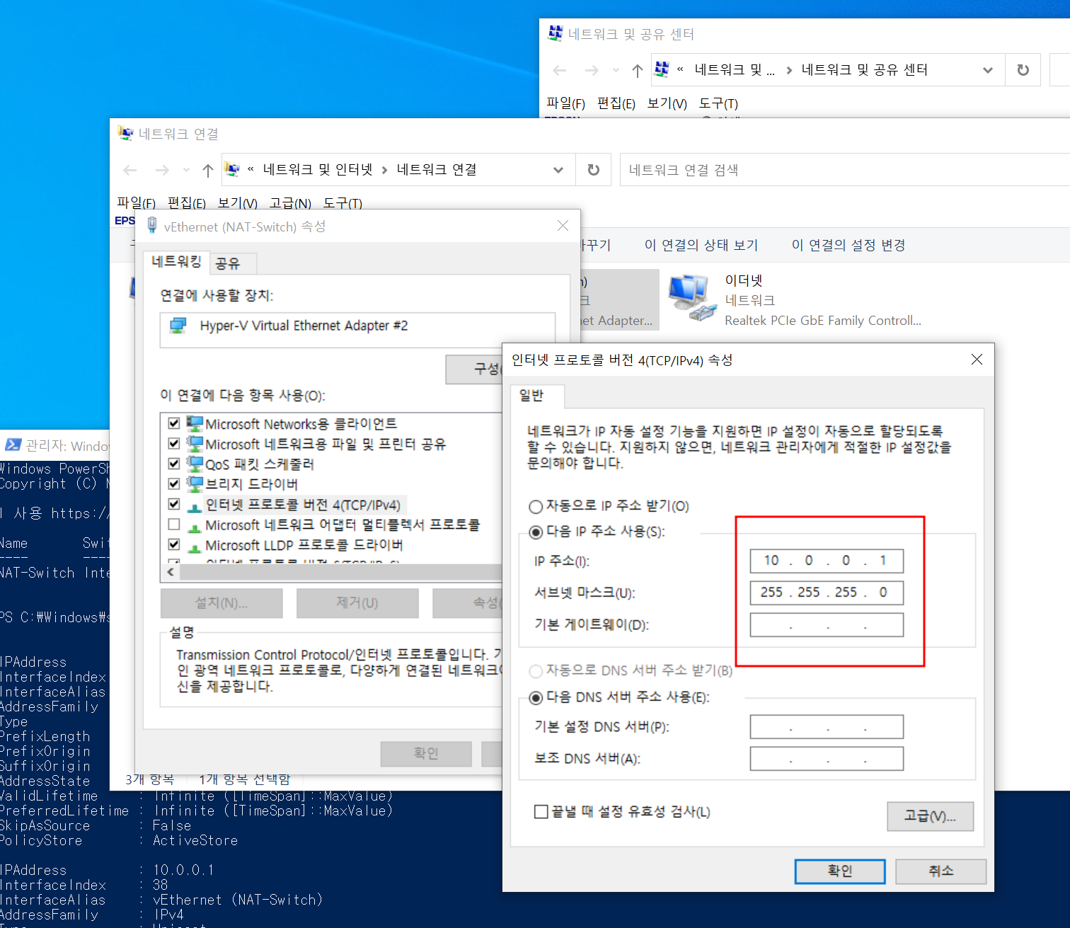 > New-NetIPAddress -IPAddress 10.0.0.1 -PrefixLength 24 -InterfaceAlias "vEthernet (NAT-Switch)"