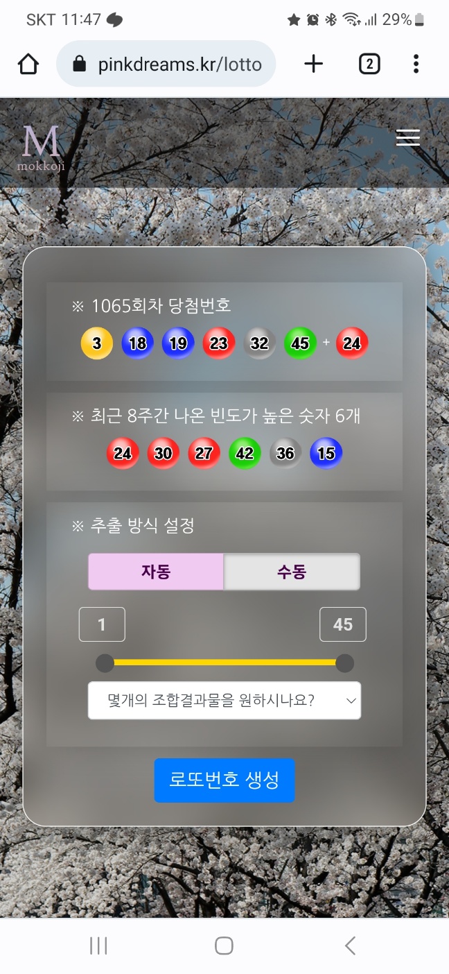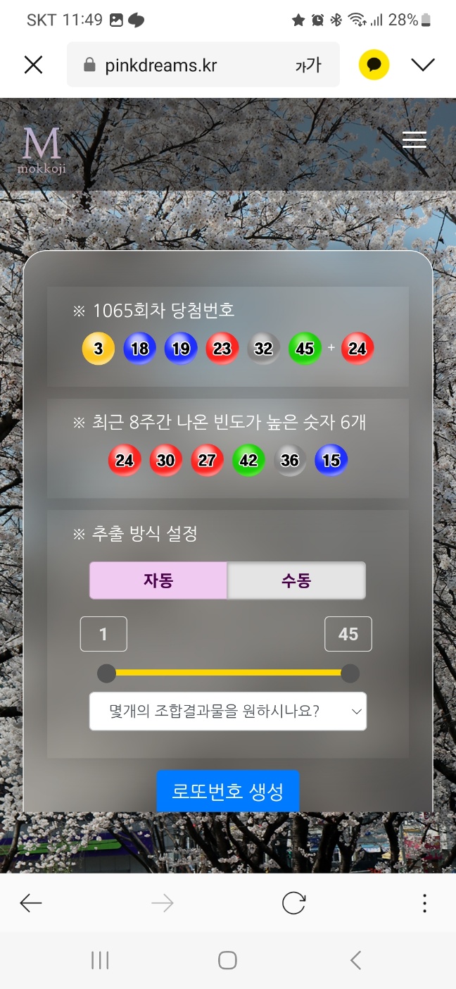 이어서 로또번호 생성기도 모바일에 맞게 화면 UI를 개선하였고 이에 사용방법을 작성하려고 합니다.